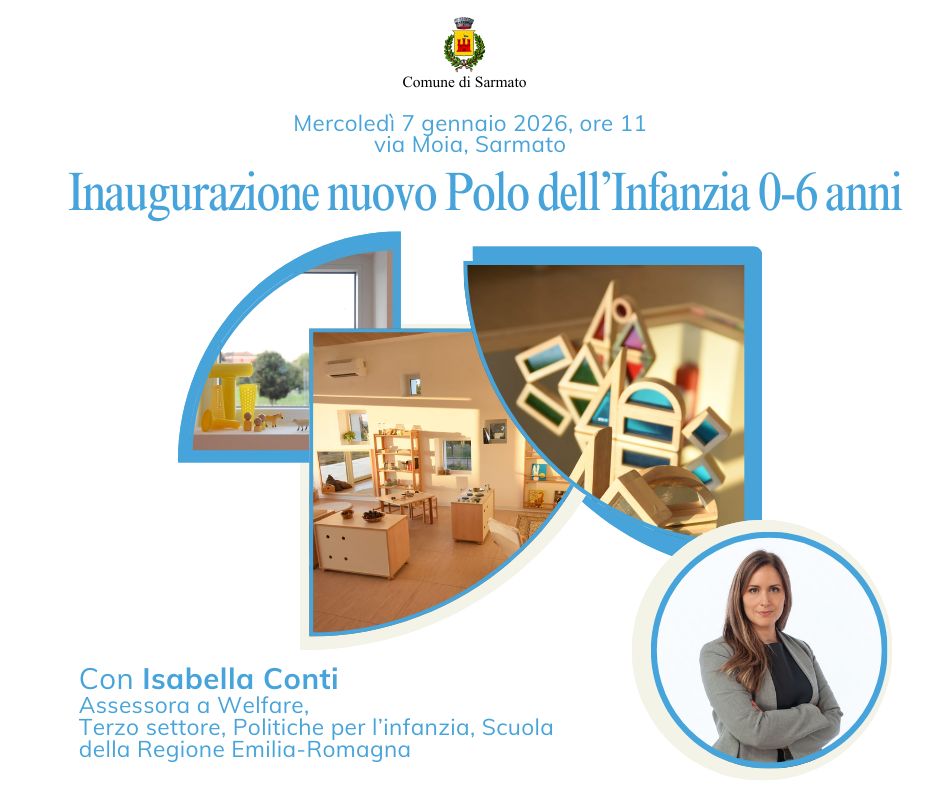 Mercoledì 7 gennaio alle ore 11 sarà inaugurato il nuovo polo dell'infanzia di Sarmato;