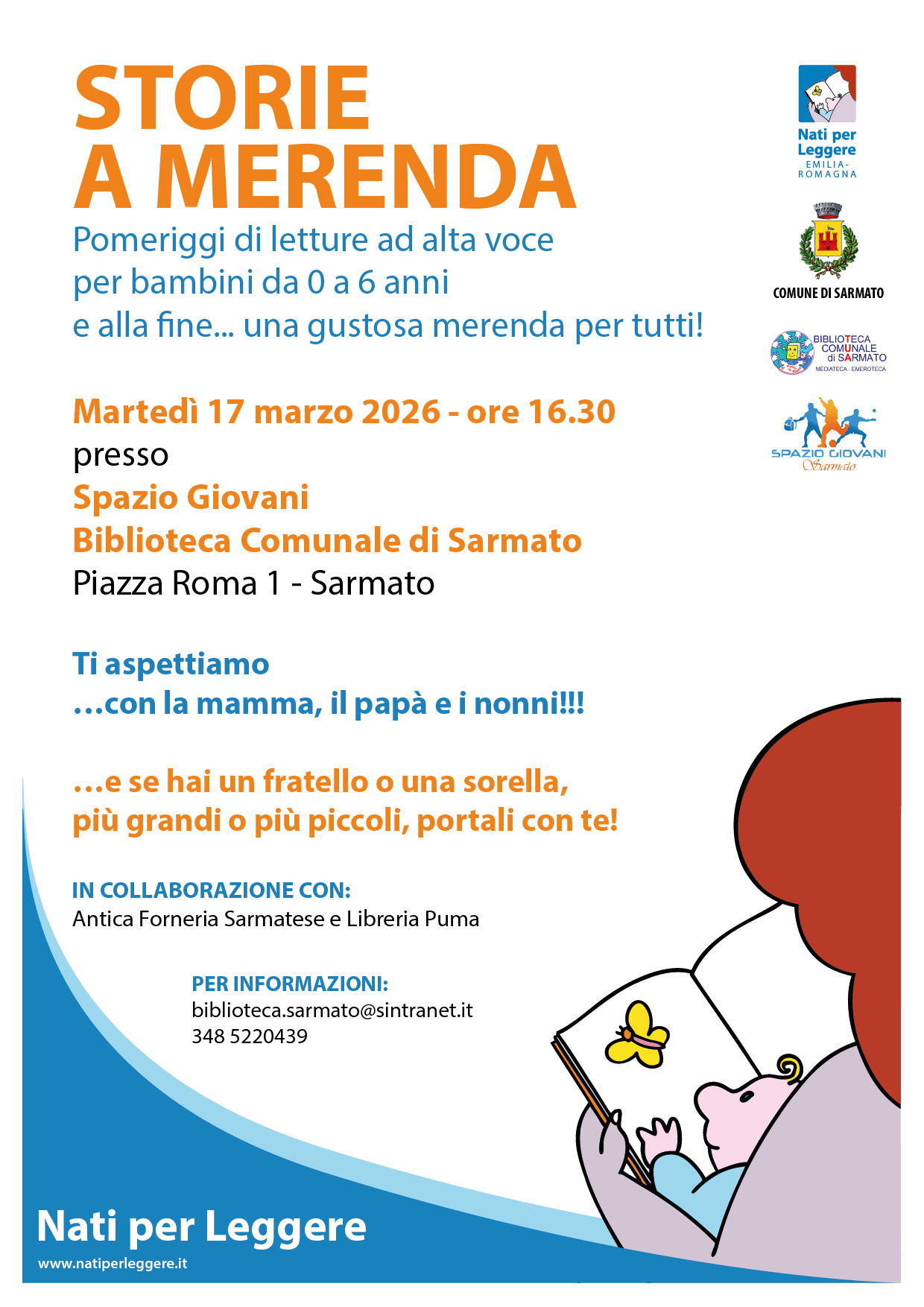 Martedì 17 marzo - Ore 16.30 presso Spazio Giovani - Biblioteca Comunale di Sarmato - Piazza Roma,1 - Sarmato